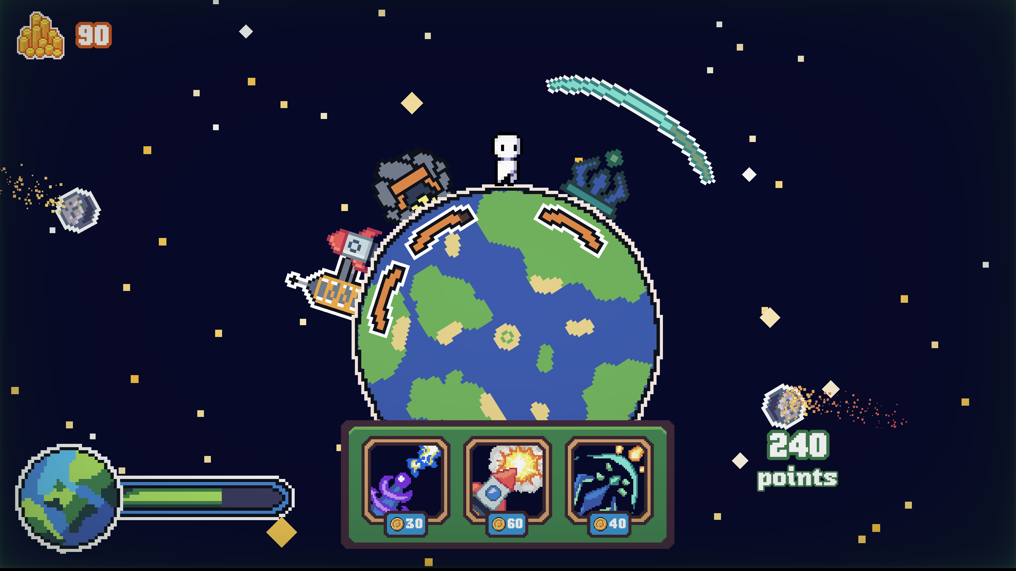 In Orbis & Disaster, you play as a lone wanderer living on a tiny planet in the middle of the cosmos. Meteors and other disasters constantly threaten your world, and survival depends on how well you prepare.